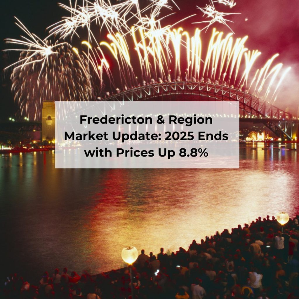 Welcome to the new year—a time for fresh beginnings, renewed energy, and setting intentions for the months ahead. I hope you’re enjoying the holiday season. The Fredericton & Region residential real estate market wrapped up December 2025 with moderated activity compared to last year. A total of 127 homes sold, reflecting a 14.4% change from December 2024. New listings totaled 98, down 2.0%, while the average sale […]